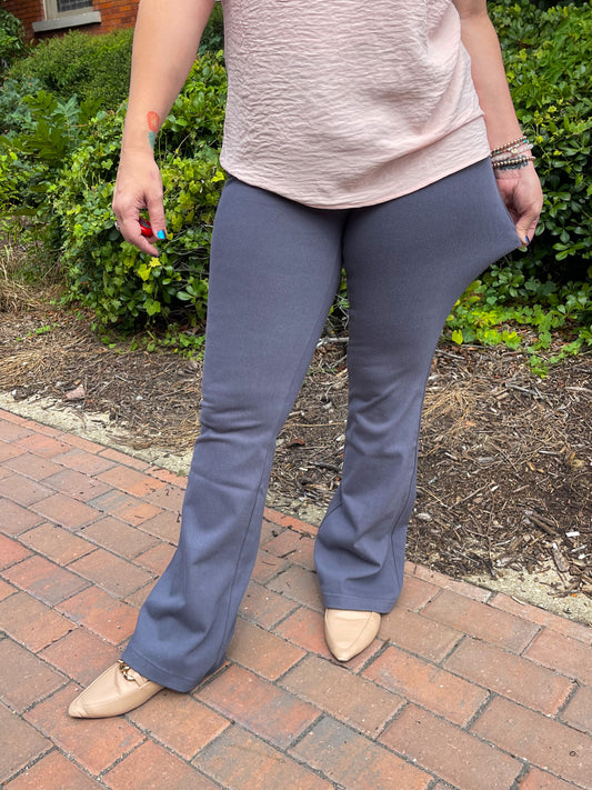 Building Habits Twill Flared Crossover Waist Pant in Titanium