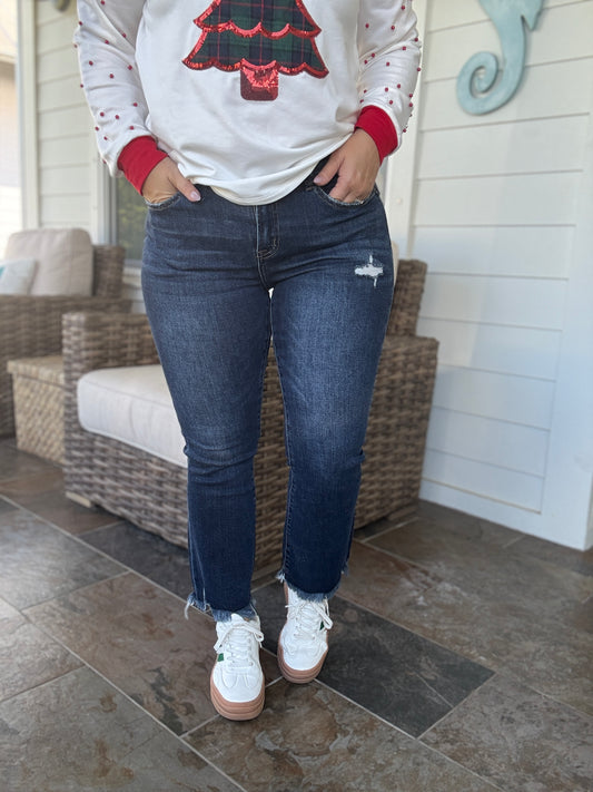 Alba High Rise Control Top Distressed Hem Skinny Jeans