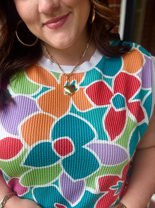 Hey Gorgeous Teal Multicolor Floral Rib Dolman Sleeve Top