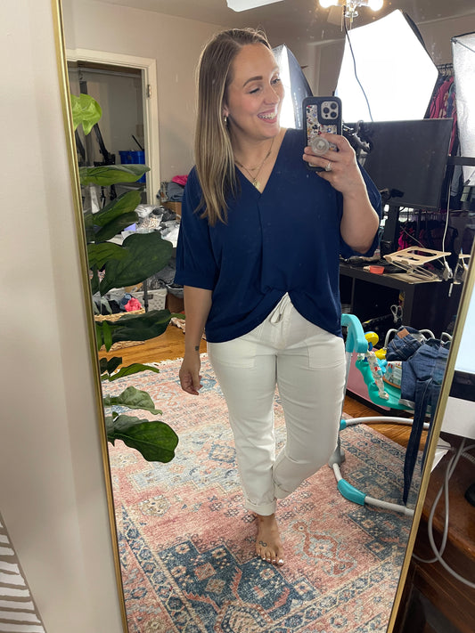 Mint Embroidered Woven Short Sleeve Dolman Top