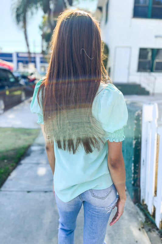 Be Bold Green Animal Print Bow Tie Flutter Sleeve Top
