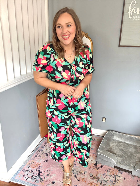 Spring Vibes Tropical Floral Ruffle Sleeve Jumpsuit