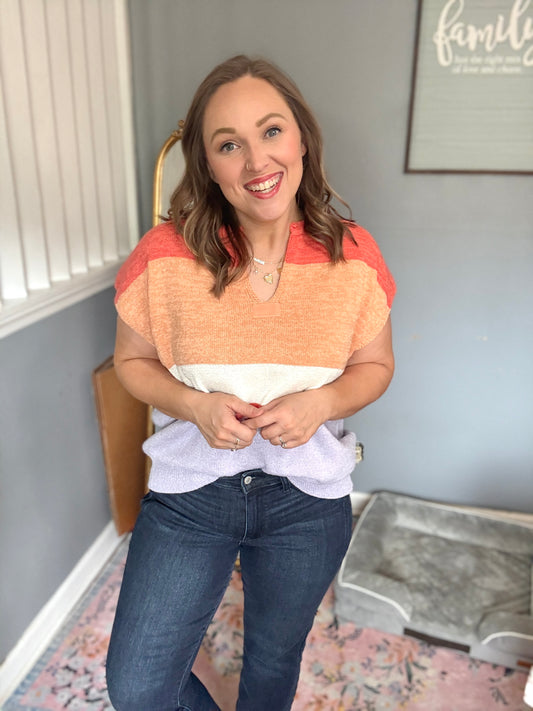 Lock Eyes Coral Notched Neck Drop Shoulder Sweater Top