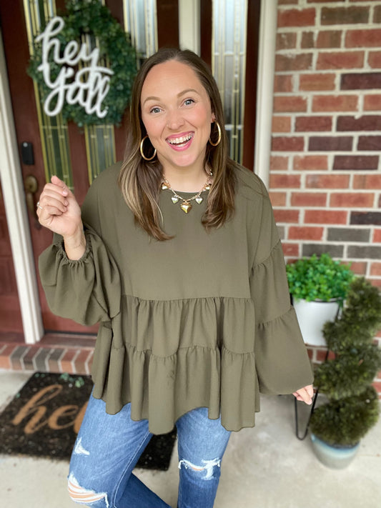 Take Me Home Olive Babydoll Blouse