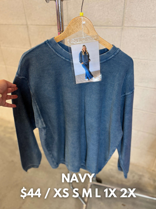 PRE-ORDER AQUA BLUE CORDED PULLOVER