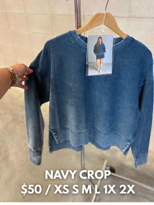 CROPPED SIDE SLIT CORDED CREW - NAVY