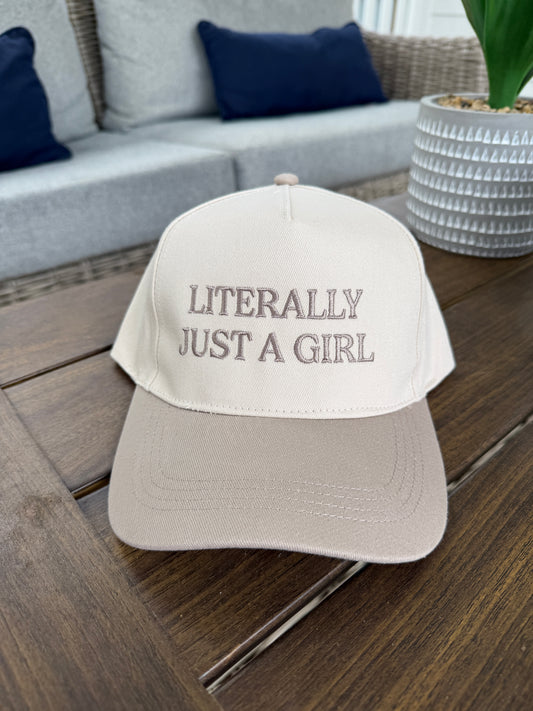 'LITERALLY JUST A GIRL' Embroidered Two Tone Baseball Cap
