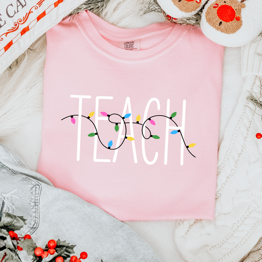 Christmas Light Teach Comfort Colors Tee