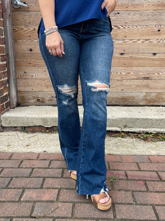 Cassandra High Rise Control Top Distressed Flare Jeans