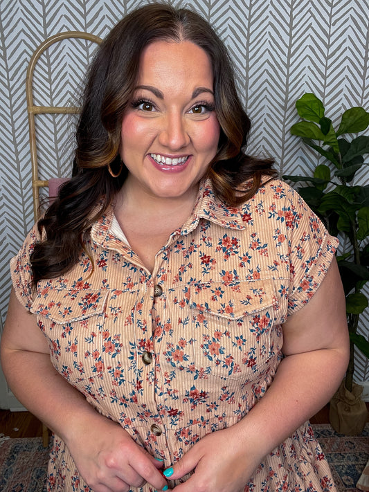 Lizzy Tank Dress in Pink and Marigold Brushed
