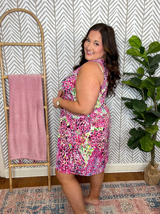 Bless Your Heart V-Neck Dress in Neon Fuchsia