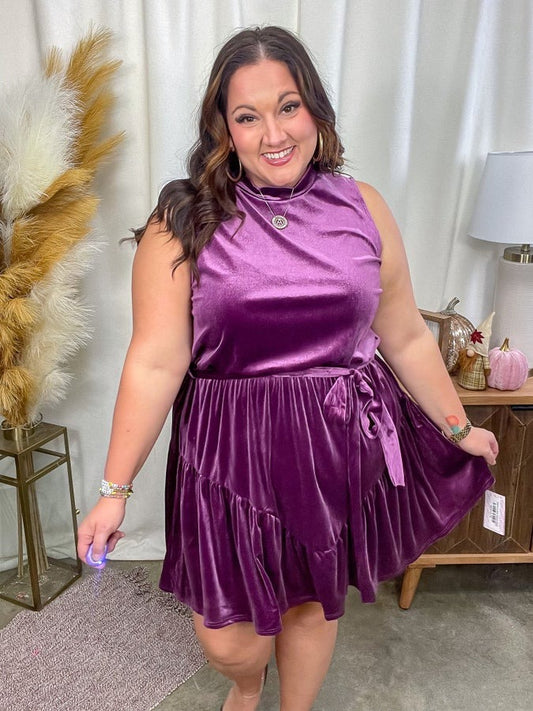 Star Struck Fuchsia Notched Neck Balloon Sleeve Sash Belt Mini Dress