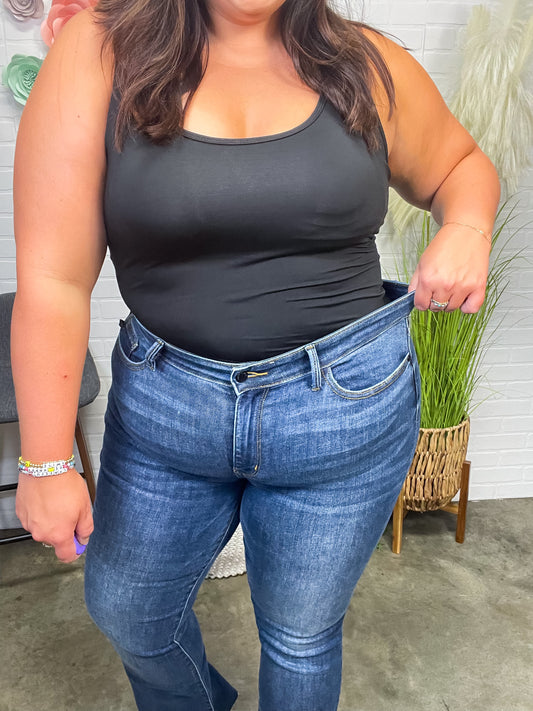 • Josephine Mid Rise Raw Hem Bootcut Jeans