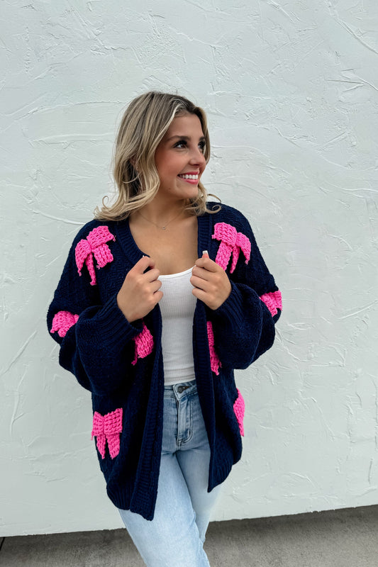 Lizzy Cardigan in Navy and Lavender Bouquet