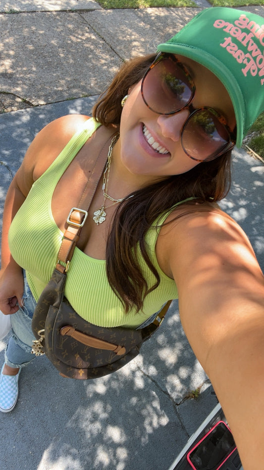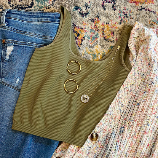 Relevant Ribbed Seamless Reversible Tank in Moss