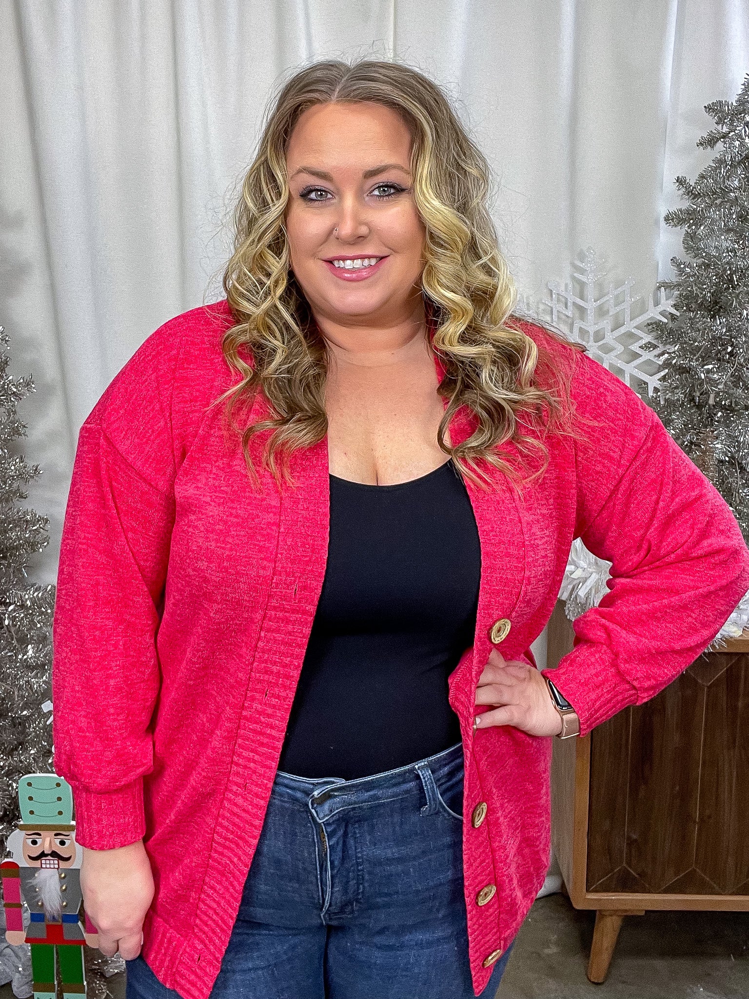 This Be My Neighbor Cardigan is a must-have for any wardrobe. Crafted from sweater knit, it has wood buttons and ribbed trim for a classic look. The classic grandpa cardigan features a v-neckline and ribbed cuffed hem for a timeless style. Embrace your inner cozy style today!
