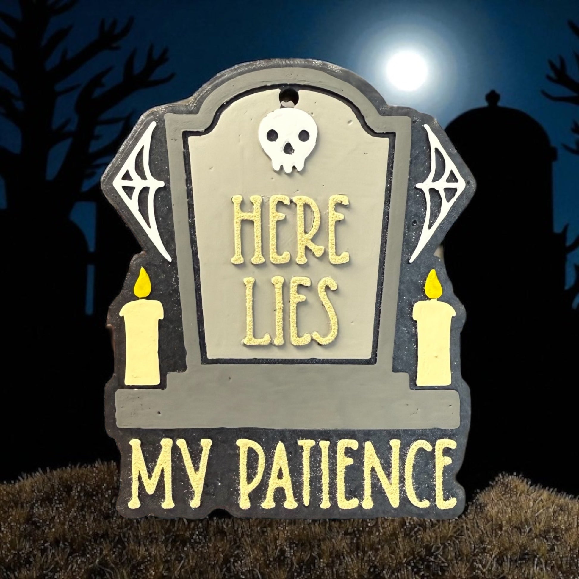 Add a spooky twist with the Tombstone Freshie, featuring the cheeky “Here Lies My Patience” haunted tombstone design. Available in all scents, this playful freshie is perfect for your car or home, bringing a fun and fresh vibe wherever you go.