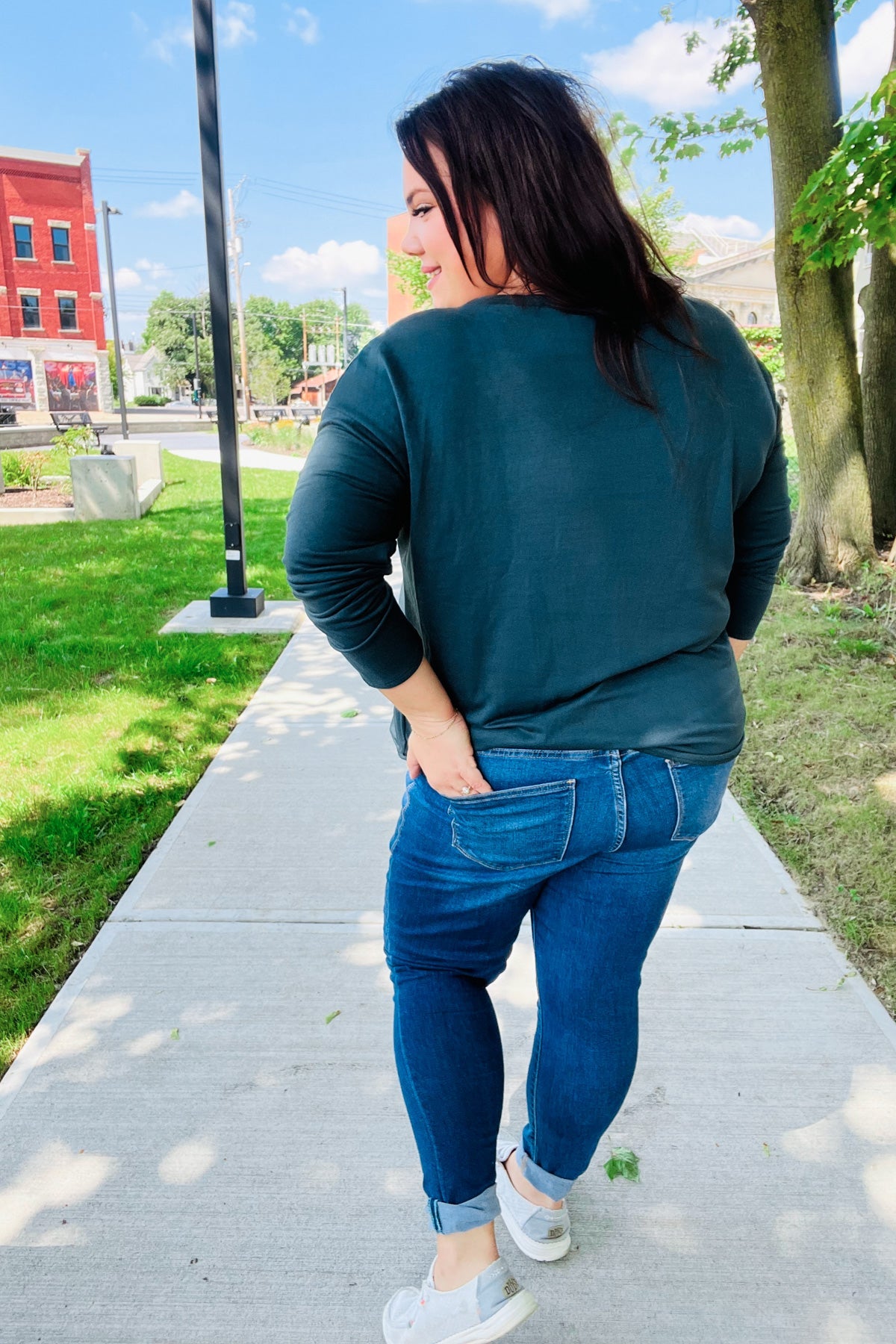 Get ready for game day with this sequin football patch top featuring soft French terry, drop shoulders and a cozy fit.