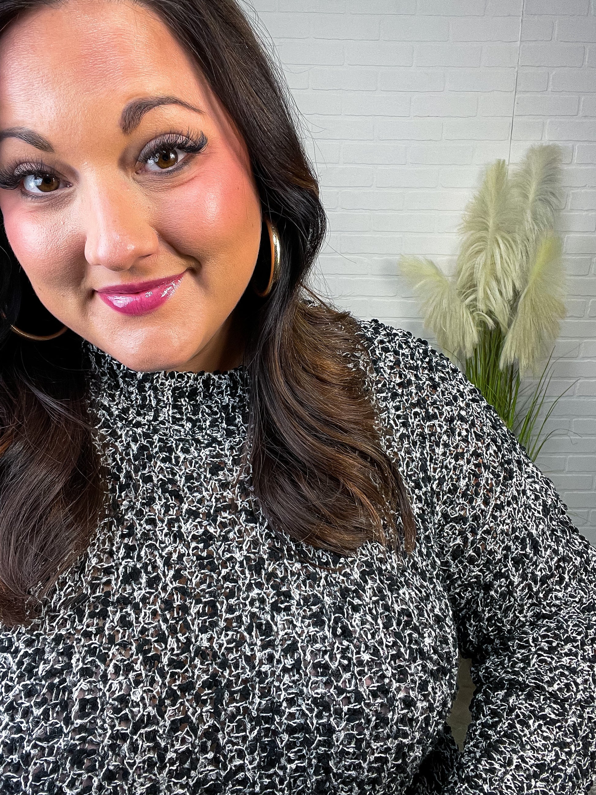 Our Low and Slow Sweater offers laid-back style with extra flair. The mock neckline and loose knit are crafted in a black and white melange for a unique twist. Distinguish yourself with this relaxed fit sweater -- just the thing to keep you effortlessly comfortable and chic.