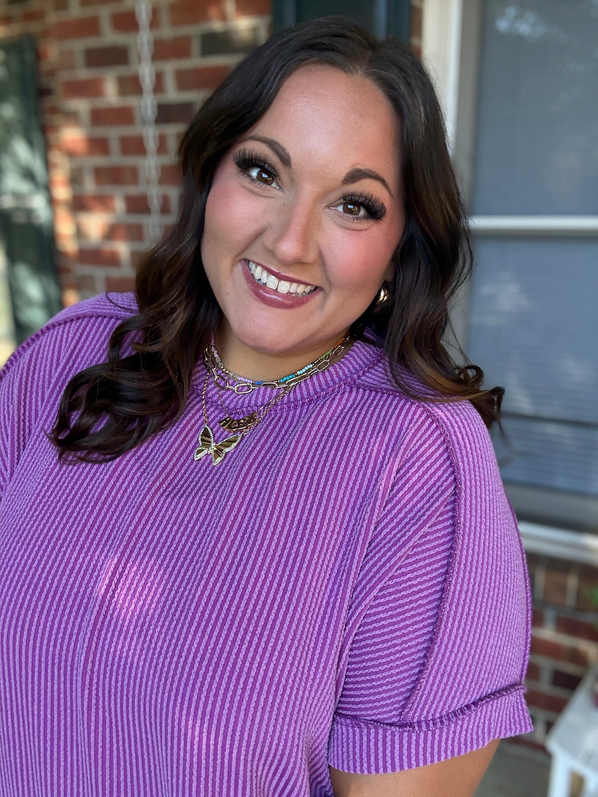 Our favorite Isla ribbed material is back in a new style! Relaxed fit, flowy through the body with longer length in the back for booty coverage and a side slit for a flattering fit. The material on this feels super luxe, very smooth on the skin!