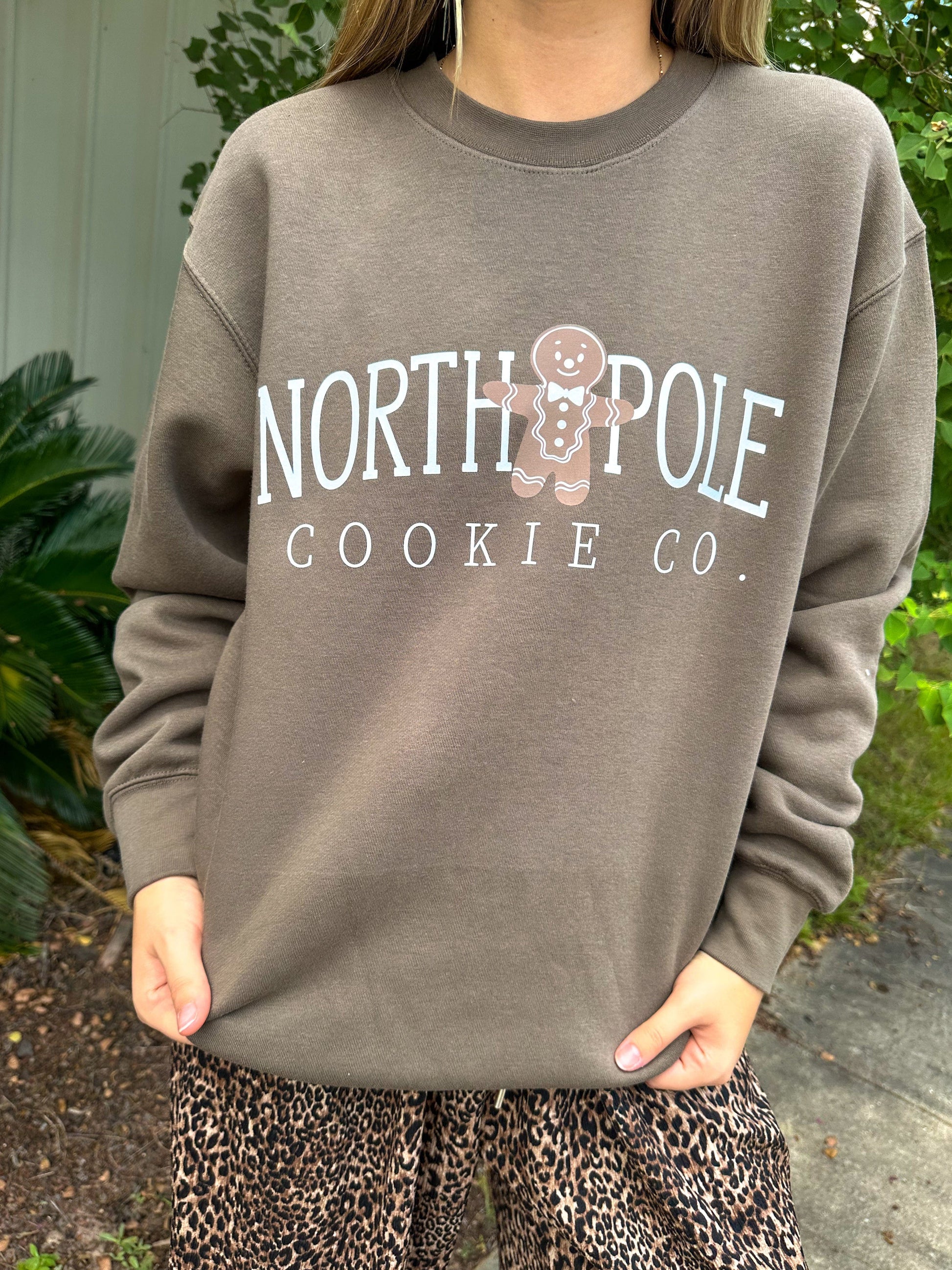Sweet, cozy, and festive—our North Pole Cookie Co. sweatshirt is made for holiday baking days and cozy nights in. Featuring a gingerbread man graphic with crisp white lettering across a cocoa-brown base, this pullover is as charming as it is comfortable.