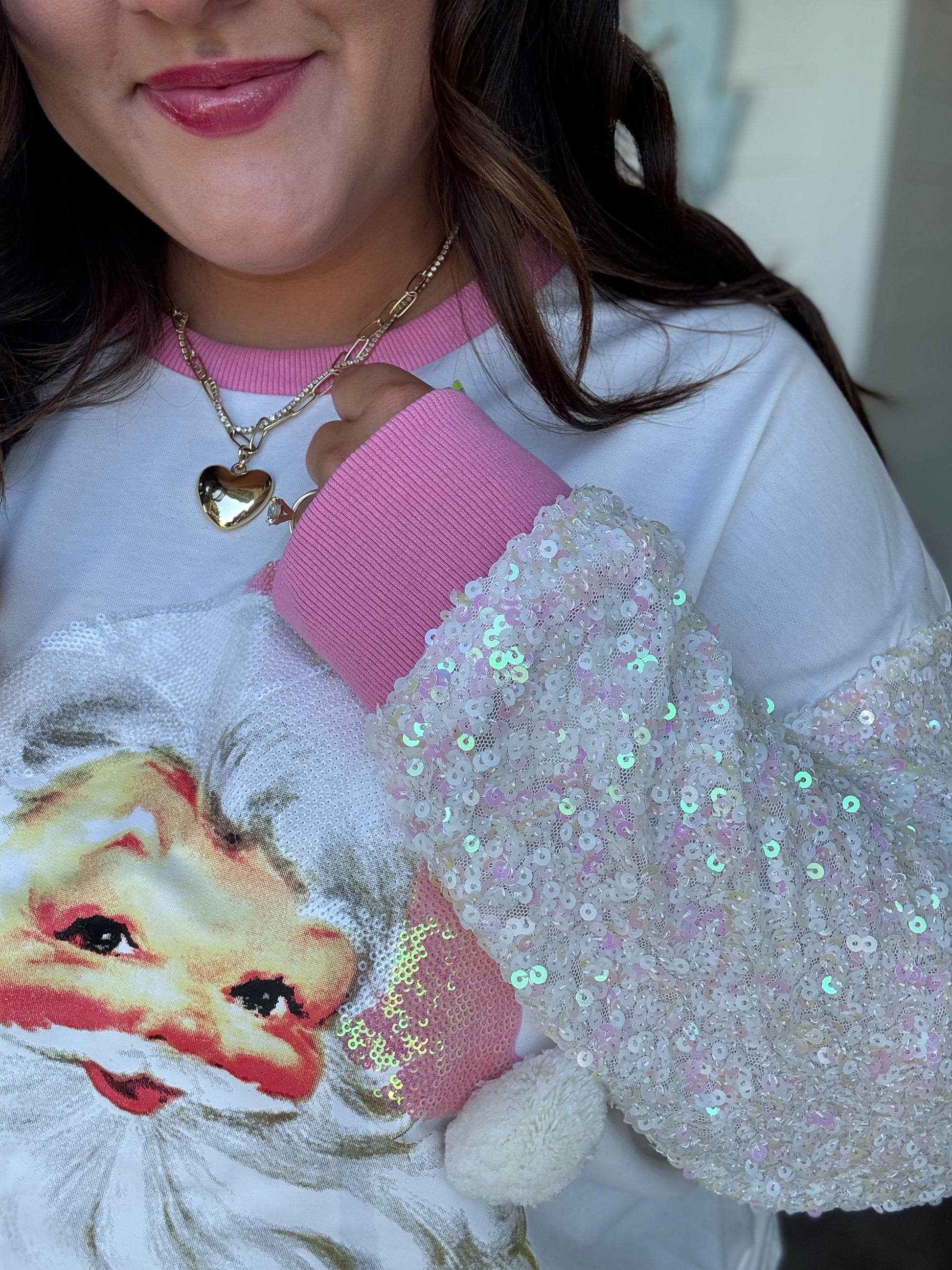 Santa Claus White Sweatshirt with Sequin Sleeves