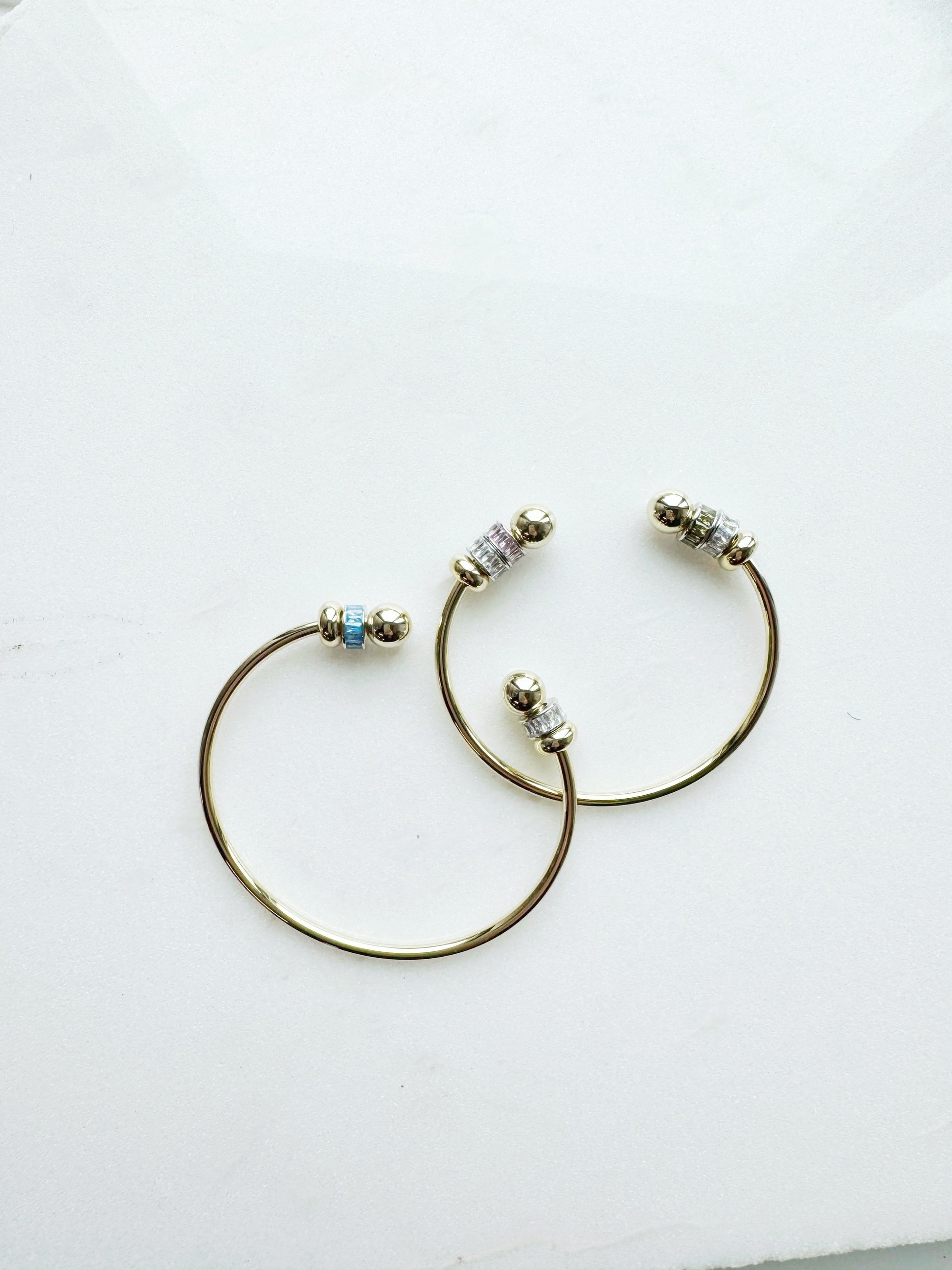 Style: Our Charm Bangle has removable end ball stoppers that twist off to add charms. Bangle come with two spacer stoppers.