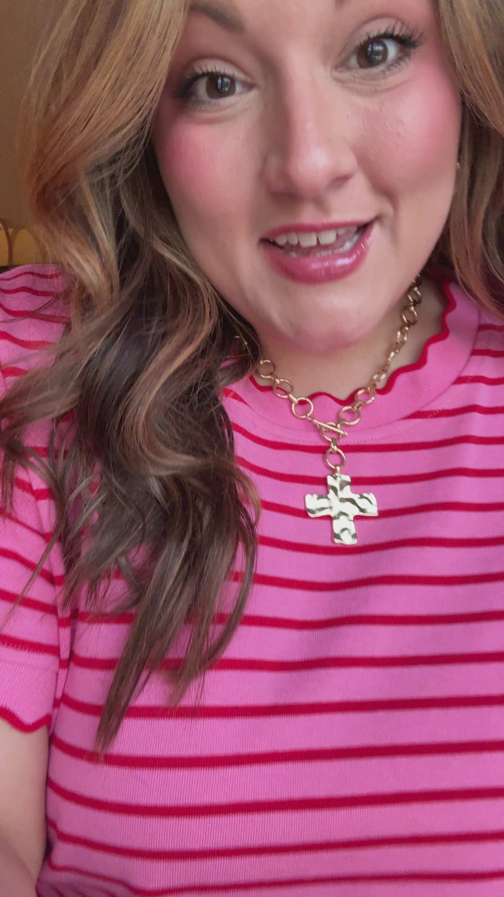 Meet the Strawberry Soda Tee! The happiest little pop of pink with the cutest scalloped details at the neck and sleeves. The knit material is super soft, stretchy, and really nice quality with a relaxed, easy fit - not cropped!! Perfect with denim, shorts, or tossed on with leggings when you still want to feel put together!