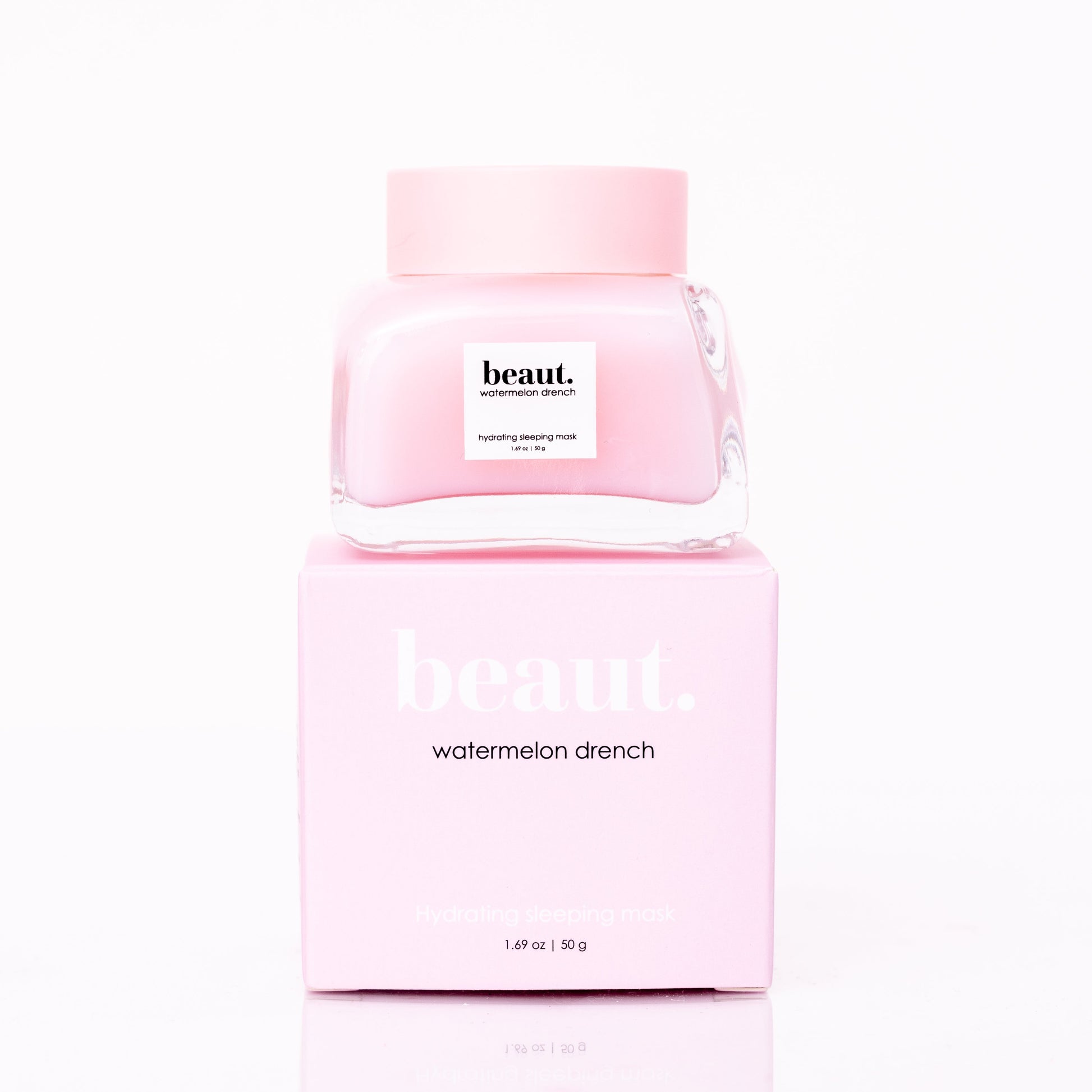 The Watermelon Drench sleeping mask is enriched with watermelon extracts, hyaluronic acid, and Alpha Hydroxy Acids (AHAs), this mask redefines skincare innovation. Its bouncy, breathable texture harnesses watermelon's amino acids and vitamins to deeply hydrate, soothe, and shield your skin against dryness and pollution.